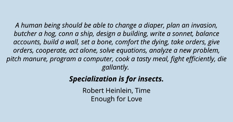 I was taught that specialization was the way to go. The way of becoming successful and earn a lot of money. Now, I firmly believe it’s the other way around. The more you know of different areas and disciplines, the better.